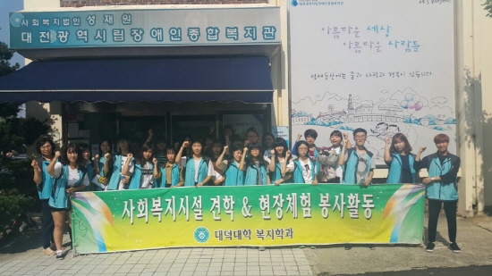대덕대학교 사회복지과 한울타리(회장 김미희)는 오늘 사회복지법인 성재원 산하 사회복지 시설을 견학하여 사회복지 현장 체험 학습을 실시하였으며, 오후에는 이 곳에서 열린 제1회 유성구 복지인 한마당 대축제 행사 준비를 위한 사회봉사 활동도 실시하였다.
