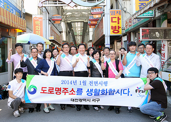 대전 서구(구청장 장종태)는 8일 도마큰시장에서 장종태 서구청장을 비롯해 상인연합회 등 20여 명이 참석한 가운데, '도로명주소 홍보 캠페인'을 펼쳤다.