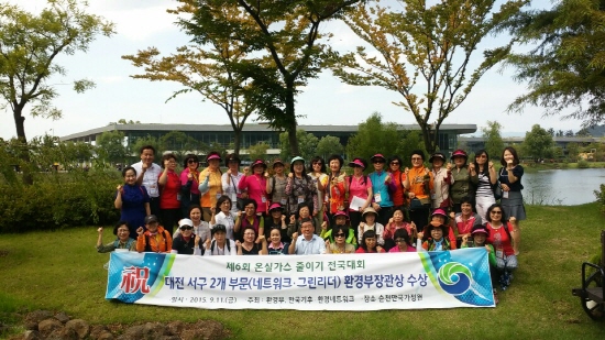 대전 서구(구청장 장종태)는 11일 ‘순천만 국가정원 습지센터’에서 열린 ‘2015 저탄소생활 실천 국민대회’에서 「6년 연속 환경부장관상」을 수상하며, ‘친환경 녹색 도시’임을 다시 한 번 입증했다.