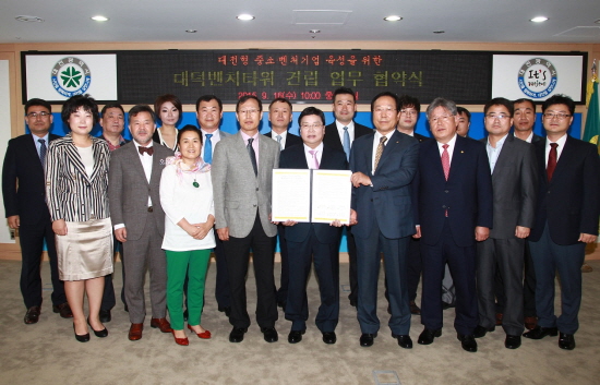 대전시와 대전경제 5개 단체는 16일 오전 시청 중회의실에서 ‘대덕벤처타워’ 건립을 위한 업무협약(MOU)을 체결하고 성공적인 건립을 위해 상호 협력키로 했다.