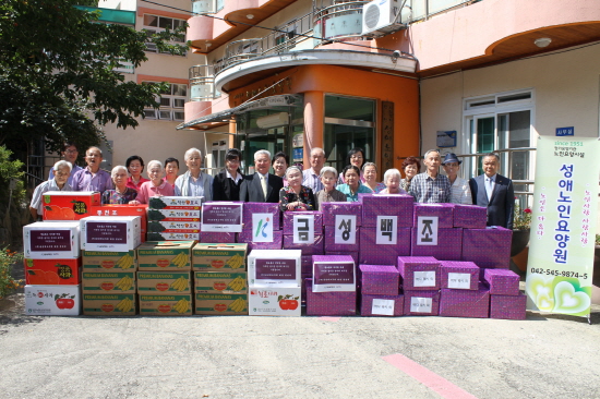 (주)금성백조주택 정성욱 회장은 18일 오후 대전지역 3대 복지시설(평화의 마을 아동복지센터, 성애노인요양원, 성심보육원)을 방문해 과일, 생필품, 상품권 등 추석 위문품을 전달했다.