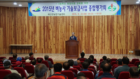 충남 예산군(군수 황선봉) 농업기술센터가 22일 기술센터 교육관에서‘2015년도 벼농사 종합평가회’를 개최했다고 밝혔다.