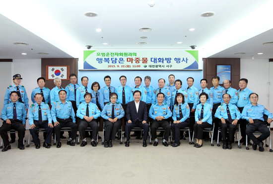 대전 서구(구청장 장종태)가 22일 구청 대회의실에서 서부‧둔산 모범운전자회 임원 31명이 참석한 가운데, 도로 현장에서 느끼는 교통 관련 애로사항과 다양한 의견을 듣는 '행복 담은 마중물 대화방' 행사를 가졌다.