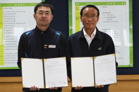 ▲ 차준일 사장(오른쪽)과 한성수 노동조합 위원장