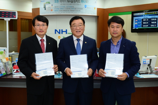 홍성군과 홍성군의회, NH농협은행 홍성군지부 관계자들은 1일 NH농협은행 홍성군지부에서 청년 일자리 창출 지원의 재원으로 사용될 ‘청년희망펀드’ 가입행사를 가졌다.