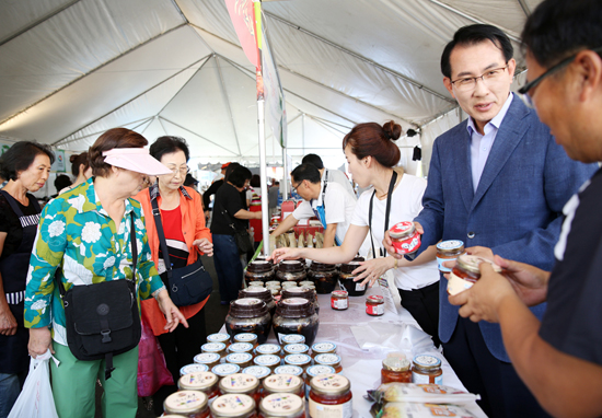 이완섭 시장, 농특산물 판매부스서 직접 홍보 및 판매 나서