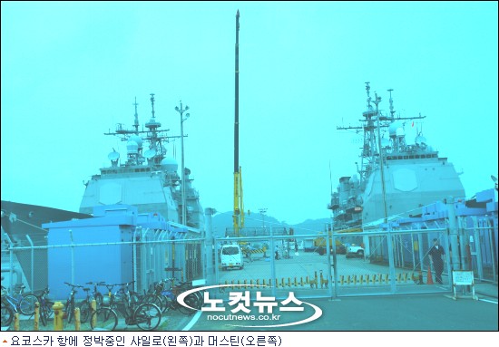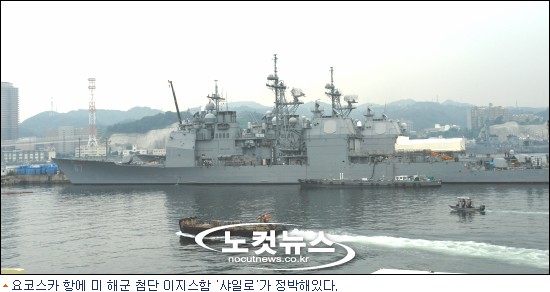 미7함대 기지에는 불과 이틀전 입항한 미해군의 최신예 이지스 순양함 '샤일로' (9950t)호가 위용을 자랑하며 정박해 있었다.