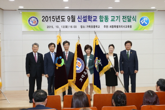 세종특별자치시교육청(교육감 최교진, 이하 세종시교육청)이 지난 13일 가락초등학교 시청각실에서 올해 9월 개교한 신설학교들을 대상으로 합동 교기 전달식을 가졌다.