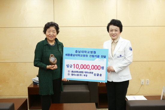 김봉옥 병원장은 “어려운 경제여건 속에서 충남대학교병원에 관심을 갖고 소중한 기부를 결정해 주신 것에 대해 깊은 감사를 드리며, 세종충남대학교병원을 명품병원으로 준비하는데 소중히 사용 하겠다”고 감사의 뜻을 전했다.