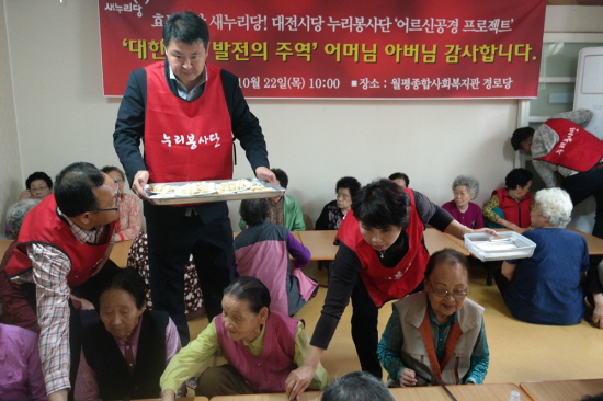 새누리당 대전광역시당 누리봉사단이 22일 서구 월평동에 위치한 월평종합사회복지관 경로당에서 어르신들을 위한 봉사활동을 펼쳤다.