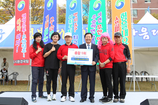 한편 이날 한마음대회는 구청 공무원, 가족, 구의원 등 1,000여 명이 각자의 띠별로 입장한 소통의 장을 시작으로 5개 팀으로 나눠 단체줄넘기, 바가지 썰매타기, 캐릭터 쓰고 달리기 등 팀별 경쟁한 화합의 장, 그 동안 숨겨놓은 끼를 마음껏 발산한 한마음의 장으로 진행됐다.