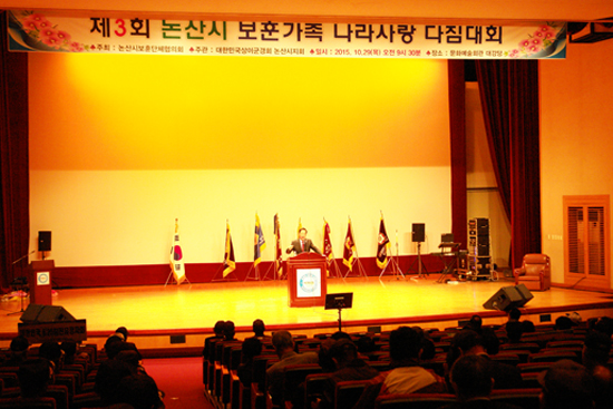충남 논산시가 29일 오전 논산문화예술회관 대강당에서 논산시 보훈단체협의회 주최, 대한민국상이군경회 논산시지회 주관으로 ‘제3회 논산시 보훈가족 나라사랑 다짐대회’가 보훈단체 회원 및 가족 등 500여명이 참석한 가운데 열렸다.