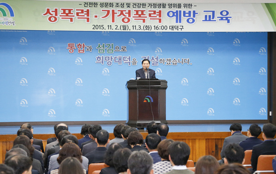 박수범 대덕구청장이 공직자를 대상으로 건전한 성문화 정착, 건강한 가정생활 및 직장 생활을 위한 성폭력 가정폭력 예방교육을 이달 2일부터 3일까지 양일간 구청 대강당에서 실시했다.