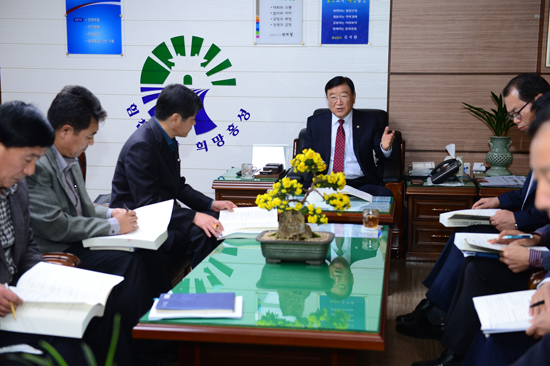 한편, 지난해까지는 회의실에서 보고회를 실시해 시간 부족으로 면밀한 검토가 부족하고 타 실·과 보고때에도 자리를 지키고 있어 민원 발생 및 업무의 비효율을 초래한다는 문제점을 보완해 올해부터는 군수실에서 구체적인 사업위주로 실·과장이 보고하고 담당들이 참석한 가운데 1주일 진행된다.