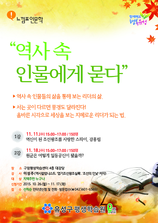 참여나 문의를 원하는 주민은 구 평생학습원 홈페이지나 유성구 평생학습원으로 하면 된다.