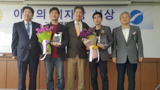 목요언론인클럽이 11일 클럽 회의실에서 ‘이달의 기자 상 시상식을 열고 유명환 충청투데이 기자와 금강일보 전우용 기자에게 상패를 수여했다.