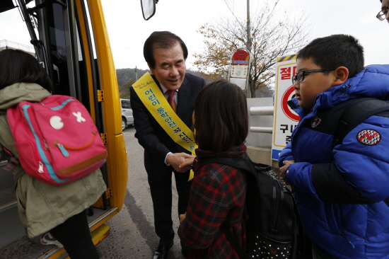 김지철 교육감, 학생들 통학차량 함께해 '눈길'