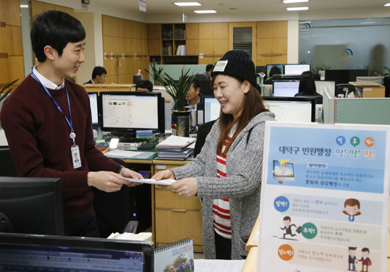 박수범 대덕구청장은“최고의 감동서비스를 제공하는 것이 진정한 민원서비스”라며 “지속적으로 통합과 섬김행정을 위한 민원시책을 추진해 나가겠다”고 말했다.