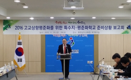 충남교육청이 20일 도교육청 제7회의실에서 2016 천안지역 특수지·평준화학교의 고교상향평준화를 위한 준비상황 보고회를 개최했다.