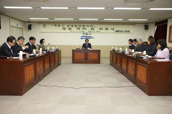 충남 계룡시(시장 최홍묵)가 24일 상황실에서 “계룡시 교육발전협의회” 창립회의 및 위촉식을 개최했다.