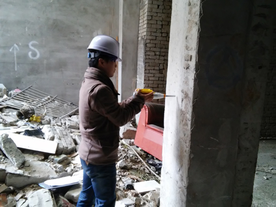 ▲ 대형건축공사 현장에서 건축물 구조안전을 확인하고 있다.