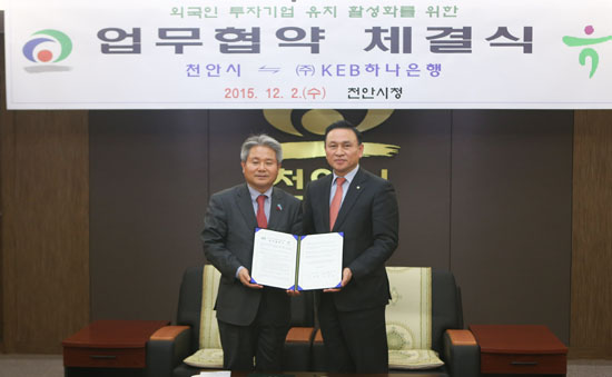 KEB하나은행은 △천안시에 외투 업무에 역량을 갖춘 투자 전담 직원 배정△외국인 투자기업에 대하여 국내 투자 관련 법규, 회계, 세무, 경영 등에 관한 컨설팅 제공△해외지점 등을 통한 천안시의 해외 투자유치 활동 등을 적극 지원하게 된다.