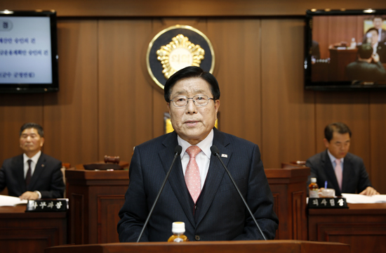 한상기 태안군수가 지난 8일 태안군의회 본회의장에서 열린 ‘제230회 태안군의회 정례회’에서 시정연설을 통해 ‘2016 군정 6대 역점과제’를 발표하고 지역경제 활성화와 선진 자치 군정 구현 등 내년도 청사진을 밝혔다.