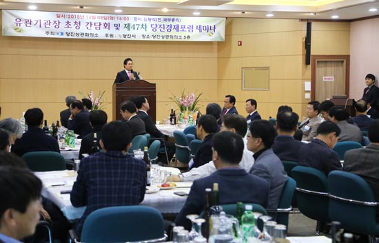 당진상공회의소(회장 홍사범)가 8일 회의실에서 유관기관 간담회 및 제 47차 경제포럼 세미나를 개최했다.