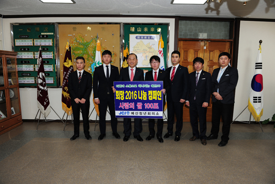 다음 세대를 이끌어 간다는 책임감을 가지고 다양한 사회활동을 전개하고 있는 예산청년회의소(회장 고덕주)는 쌀 100포대를 군에 기탁했다.
