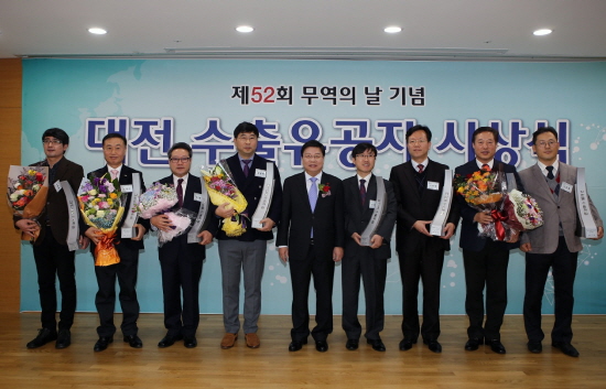 대전시가 한국무역협회 대전충남지역본부와 공동으로 17일 오전 대전무역회관(3층)에서 ‘제52회 무역의 날’ 기념 대전 수출유공자 시상식을 개최했다.