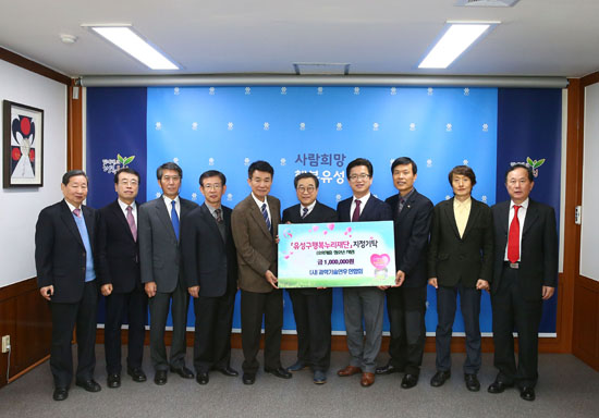대전 유성구가 17일 구청 행복사랑방에서 (사)과학기술연우연합회(회장 채영복)로부터 100만원의 성금을 전달받았다.