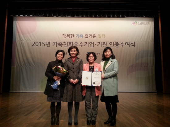 대전 동구가 22일, 서울 중구 소재 대한상공회의소 국제회의장에서 가족친화 업무 관계자 등 400여 명이 참석한 가운데 ‘2015년 가족친화우수기업 인증 수여식’에서 공로를 인정받아 우수기관으로 선정 여성가족부장관 표창을 수상했다고 밝혔다.