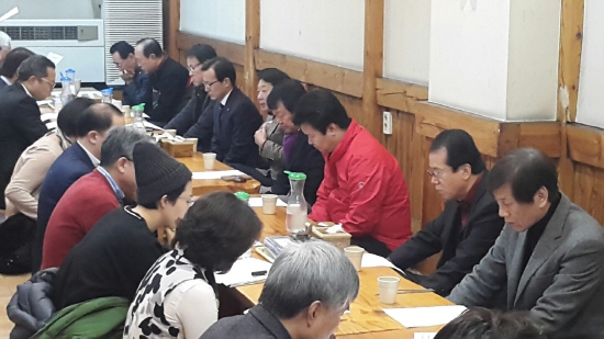 새누리당 대전시당이 24일 오전, 중구 문화동의 한 식당에서 위즈덤위원회 전체 회의를 진행했다. 이날 회의는 지난 10일 위즈덤위원회 출범 후 처음 실시하는 전체회의로 위원회의 향후 활동 방향 등을 논의하기 위해 마련됐다.