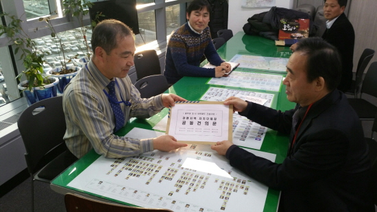 ▲ 중부권 동.서 내륙철도건설사업 관련지역자치단체 공동건의문 전달