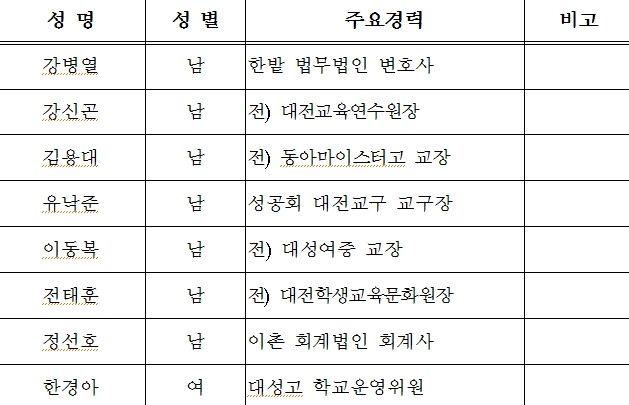 대전광역시교육청은 지난 28일 개최된 교육부 소속 사학분쟁조정위원회(사분위)에서 교사 채용비리와 관련하여 도의적인 책임을 지고 이사 전원이 물러난 대성학원에 선임할 임시이사진 8명을 선정하여 통보해 왔다고 밝혔다.