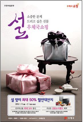 충청지방우정청(청장 이승재)은 1월 11일부터 2월 1일까지 22일간 ‘우체국쇼핑 설맞이 최대 50% 할인대잔치’를 열고 6,732개의 우리특산물을 최대 50%까지 할인 판매한다고 밝혔다.