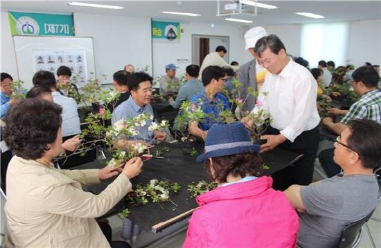 ▲ 천안시산림조합에서 철죽분재 철사걸기와 전지전정 현장실습