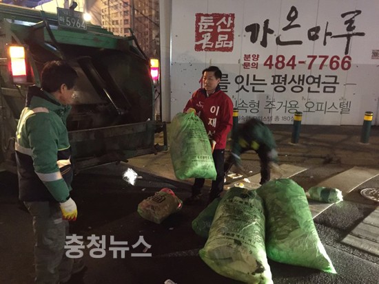 이재선 예비후보는 직업의 소명의식을 가지고 열악한 근무여건과 영하의 추위 속에서 매일 배출되는 생활․음식물 폐기물을 수집․운반하여 시민생활 편의와 쾌적한 도심환경 조성에 노고가 큰 환경미화원들을 격려하고 소통을 위한 새벽청소에 동참했다.