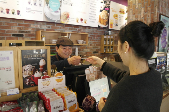 ▲ 윤석대 예비후보, '커피숍 아르바이트' 일일체험