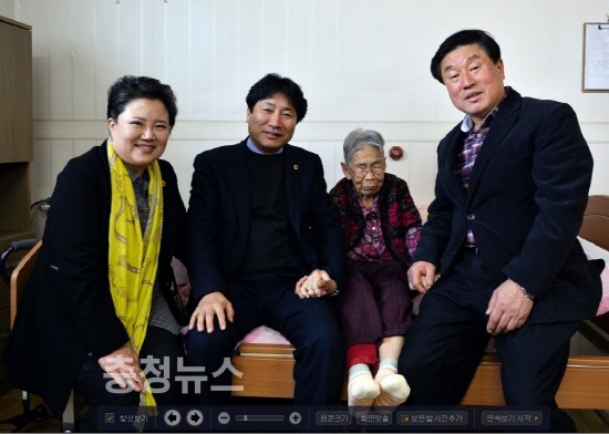▲ 사진 왼쪽부터 정준이 의원, 윤형권 의원, 허월향 할머니, 김정봉 의원 /충청뉴스 최형순 기자 세종시의회 의원들은 설 명절을 맞아 연동면 베데스다의 집을 방문하여 100세 고령 허월향 할머니와 즐거운 시간을 갖고 있다. 저작권자 © 충청뉴스 무단전재 및 재배포 금지 최형순 기자 다른기사 보기 기사가 마음에 드셨나요? 충청뉴스 좋은 기사 후원하기 1,000원 3,000원 5,000원 10,000원 30,000원 50,000원 직접입력 비회원 약관동의하기 ※ 소중한 후원금은 더 좋은 기사를 만드는데 쓰겠습니다.