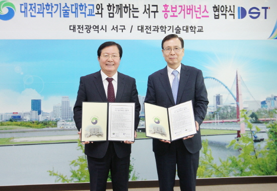 대전 서구(구청장 장종태)는 23일 구청 다목적실에서 대전과학기술대학교(총장 정영선)와 ‘대학과 함께하는 홍보 거버넌스 협약’을 체결했다.