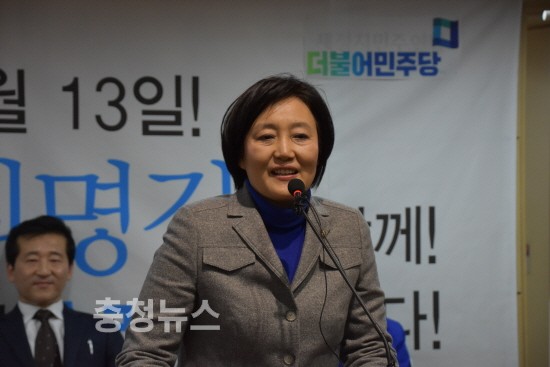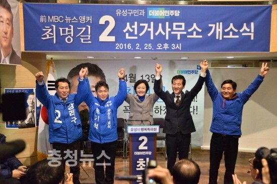 이날 지원사격에 나선 박영선 국회의원은 축사에서 “최명길 후보는 유성을 행복하게 만들 적임자”라며 “유성이 현재 조금 침체돼 있지만 최 후보가 당선되면 크게 바뀔 것”이라고 말했다.