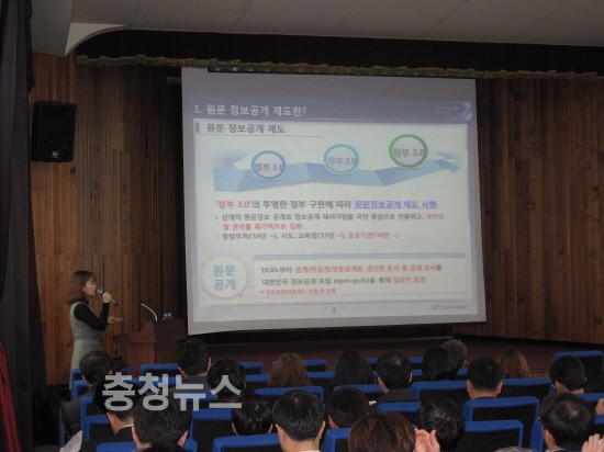 이날 교육은 충남지역본부, 천수만사업단 등 충청권 5개부서 직원들이 참석하여 생산문서 원문 정보공개제도 추진내용 및 공개분류기준, 정보공개 시 유의사항에 대한 내용등으로 진행됐다.