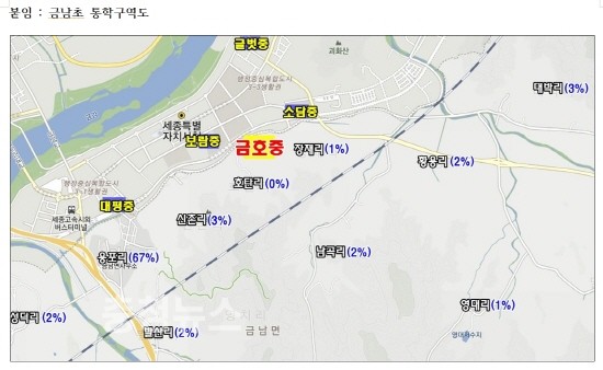 2. 금남면 발전과 학군 변경 등 행정적 조치로 해결 될수 있다고 주장한다.