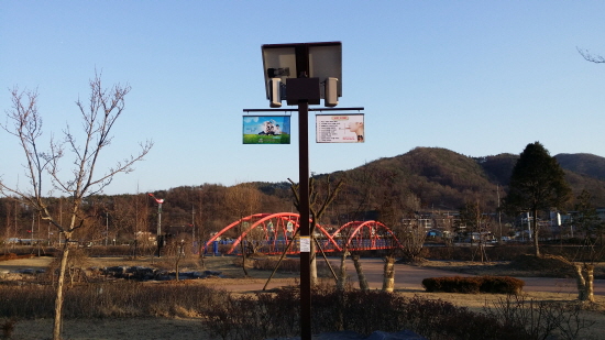 ▲ 지천생태공원에 설치된 금연전자동 안내시스템 (사진제공-청양군쳥)