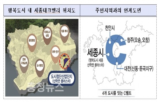 ▲ 세종테크밸리 위치도 및 주변 지역과의 연계도면/충청뉴스 최형순 기자