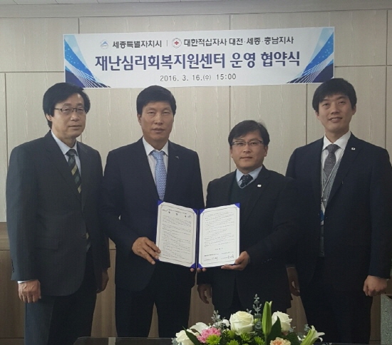 세종특별자치시(시장 이춘희)가 대한적십자사 대전·세종·충남지사와 현장 중심의 재난심리회복지원 강화를 위해 16일 시청에서 재난심리회복지원센터 운영 협약을 체결했다.
