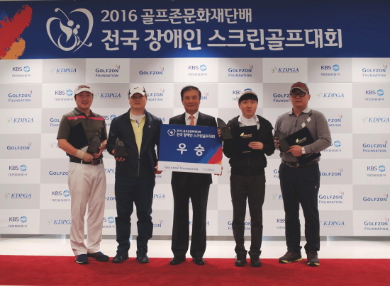 (재)골프존문화재단(김영찬 이사장)과 대한장애인골프협회(윤대혁 회장) 공동 주관으로 열린 ‘2016 골프존문화재단배 전국 장애인 스크린골프대회’가 21일 골프존 조이마루에서 대단원의 막을 내렸다.