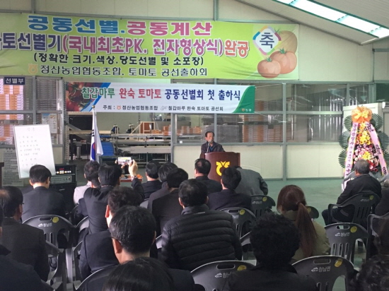충남 청양군이 지원하고 정산농협이 육성하고 있는 칠갑마루완숙토마토 공선회(회장 이기명)가 지난 21일 정산농협 경제종합센터에서 2016년 첫 출하식을 가졌다.