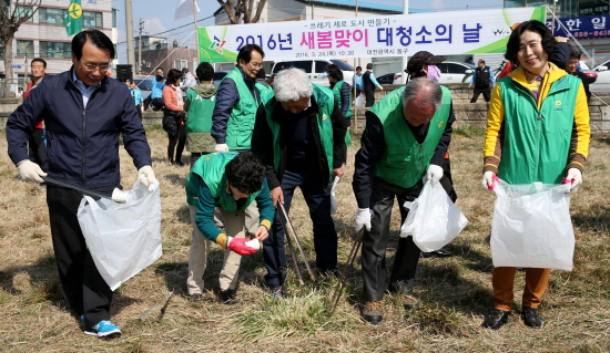 대전 동구(구청장 한현택)는 24일 삼성동 보문고 뒤편 대동천 둔치에서 주민, 공무원, 유관기관 및 단체 등 1500여 명이 참가한 가운데 ‘2016년 새봄맞이 대청소’를 실시했다고 밝혔다.